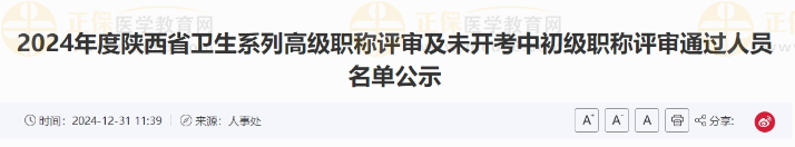 2024年度陜西省衛(wèi)生系列高級職稱評審及未開考中初級職稱評審通過人員名單公示公布啦!醫(yī)學教育網整理具體內容如下: