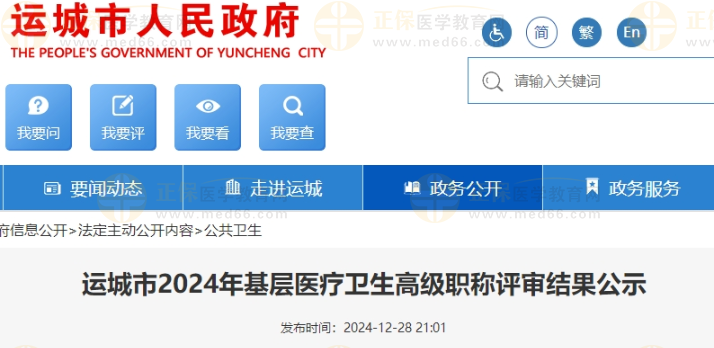 運(yùn)城市2024年基層醫(yī)療衛(wèi)生高級(jí)職稱評(píng)審結(jié)果公示公布啦!醫(yī)學(xué)教育網(wǎng)整理具體內(nèi)容如下: