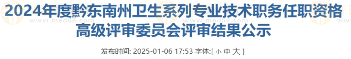 2024年度黔東南州衛(wèi)生系列專業(yè)技術職務任職資格高級評審委員會評審結果公示公布啦!醫(yī)學教育網整理具體內容如下: