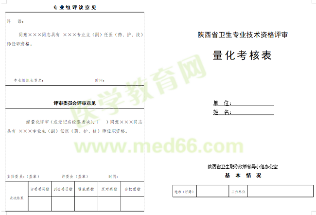 2020年陜西省衛(wèi)生專業(yè)技術(shù)資格評審量化考核表在哪能下載?為解決各位考生需求,醫(yī)學(xué)教育網(wǎng)小編整理官方內(nèi)容如下: