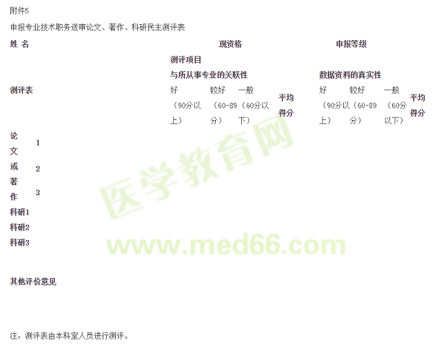 青島申報專業(yè)技術(shù)職務(wù)送審論文、著作、科研民主測評表,為幫助各位考生及時了解詳情,醫(yī)學(xué)教育網(wǎng)小編整理官方內(nèi)容如下: