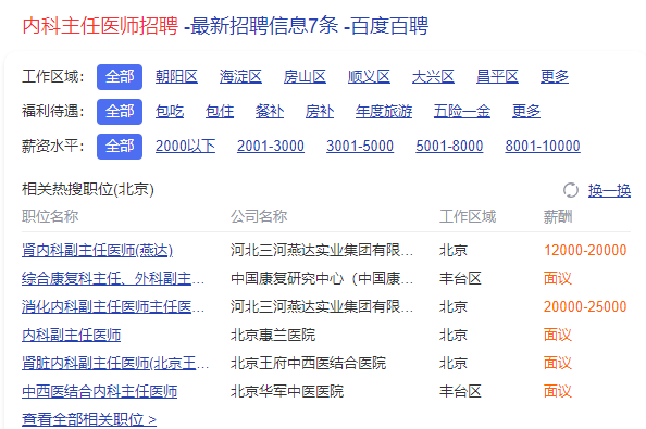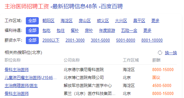 為什么考衛(wèi)生高級職稱考試?不僅是通過考試取得證書證明自己的業(yè)務(wù)水平。更主要的是,越高的職稱,代表在工作方面,選擇的機會也是更多更好!小編隨意搜索了主治醫(yī)師和主任醫(yī)師招聘情況,簡單截圖參考。