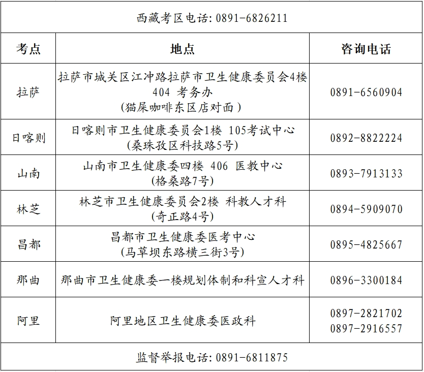 (二)考試地點(diǎn):考試地點(diǎn)以準(zhǔn)考證為準(zhǔn)。考生可關(guān)注“西藏衛(wèi)生考試”微信公眾號(hào)或西藏衛(wèi)生健康委門戶網(wǎng)站以便在第一時(shí)間獲取相關(guān)考試信息。