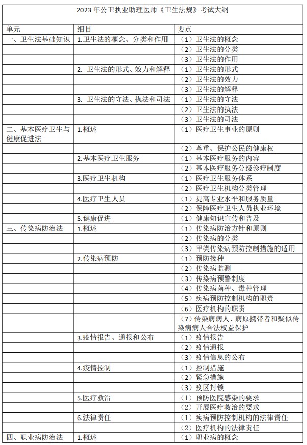 2023年公衛(wèi)執(zhí)業(yè)助理醫(yī)師《衛(wèi)生法規(guī)》考試大綱部分預(yù)覽