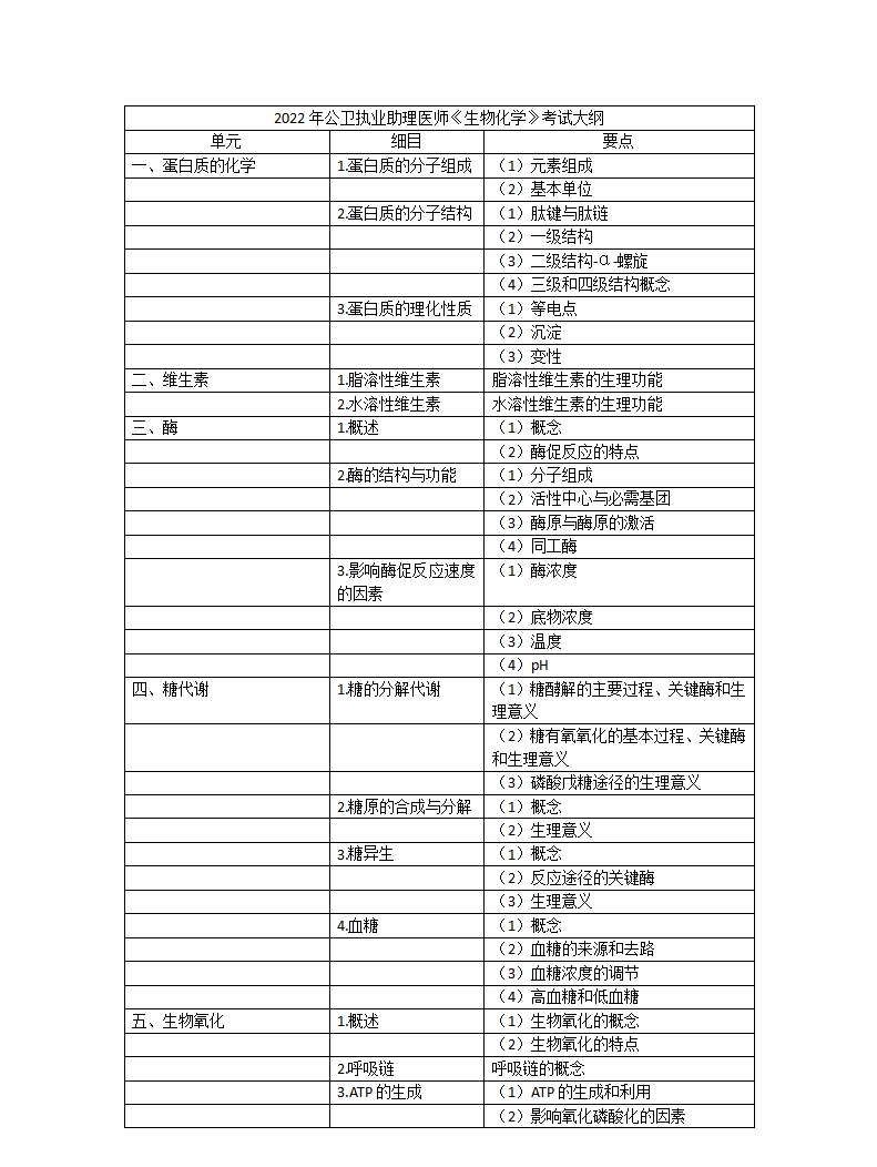2022年公衛(wèi)助理醫(yī)師綜合筆試《生物化學(xué)》大綱速覽