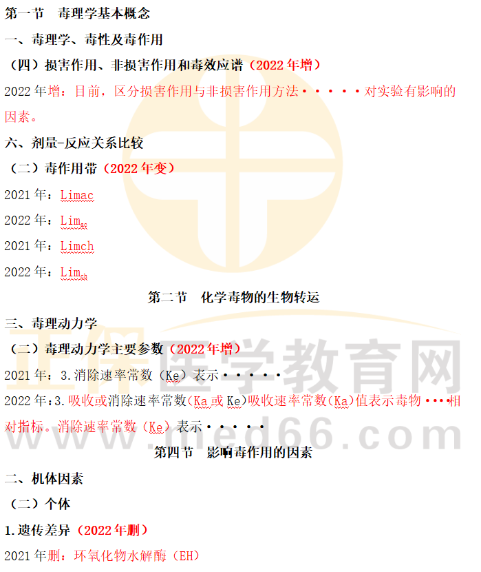 全國(guó)2022年公衛(wèi)執(zhí)業(yè)醫(yī)師考試《衛(wèi)生毒理學(xué)》官方指導(dǎo)用書(shū)教材變動(dòng)