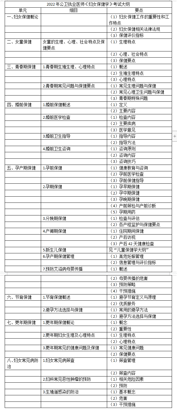 2022年公衛(wèi)執(zhí)業(yè)醫(yī)師《婦女保健學》考試大綱在線下載