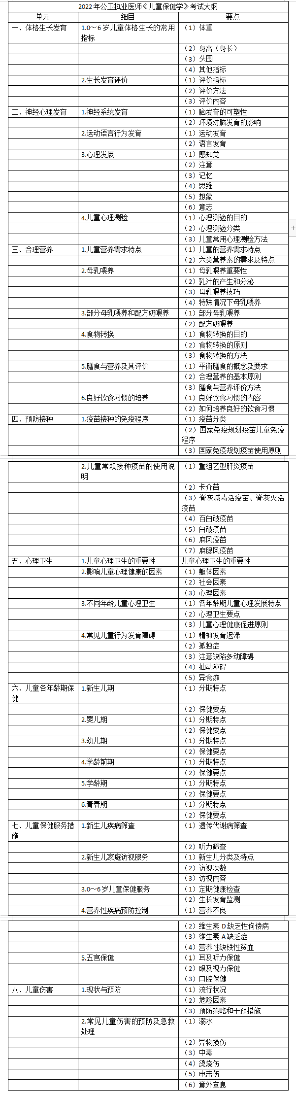2022年公衛(wèi)執(zhí)業(yè)醫(yī)師《兒童保健學(xué)》考試大綱