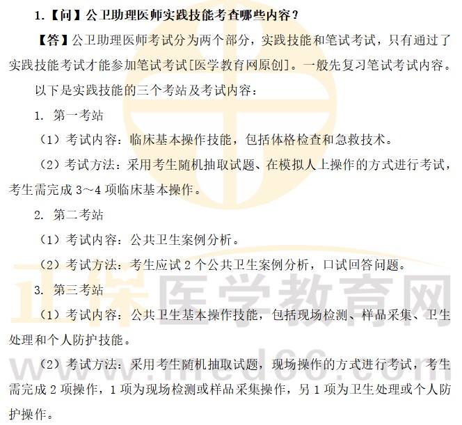 1.公衛(wèi)助理醫(yī)師實(shí)踐技能考查哪些內(nèi)容?