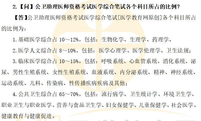 2.公衛(wèi)助理醫(yī)師資格考試醫(yī)學(xué)綜合筆試各個(gè)科目所占的比例?