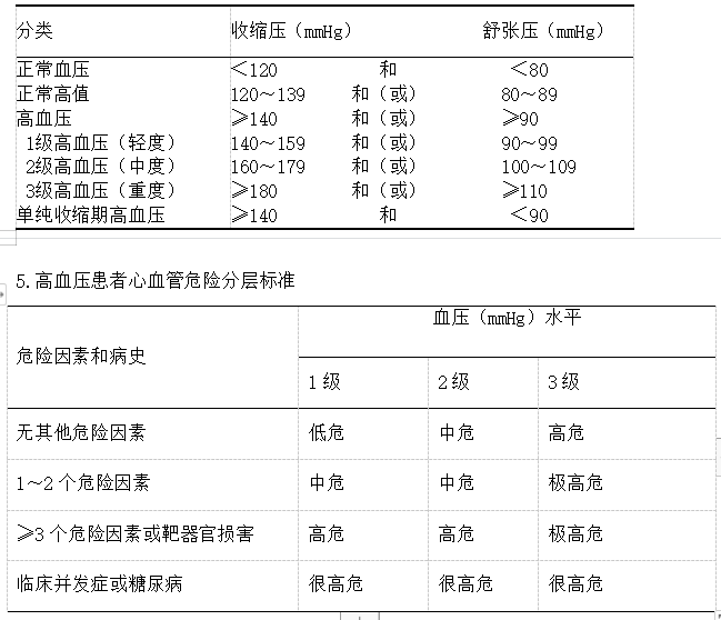 4.血壓水平的定義和分類(《中國高血壓防治指南(2010年)》)