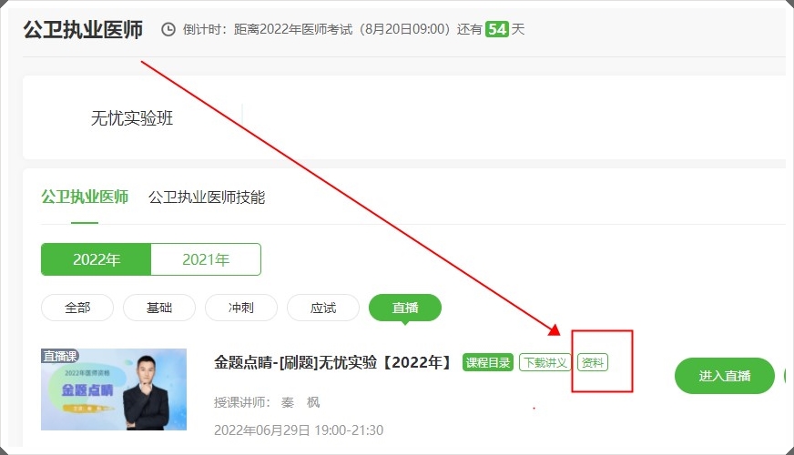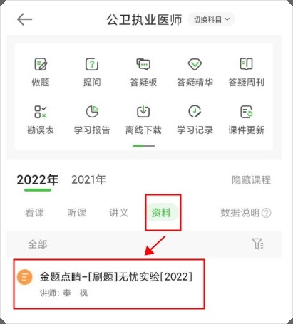 資料:直播開始前,學(xué)員可提前下載本次直播講義,提前做題,提前做好課前預(yù)習(xí)。提醒各位學(xué)員,及時更新醫(yī)學(xué)教育網(wǎng)APP至最新版本。