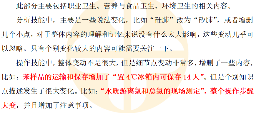 2025年公衛(wèi)助理醫(yī)師《實(shí)踐技能》教材今年出版較去年較早,首先說下考試大綱,2025年考試大綱與2024年考試大綱相比無任何變化,經(jīng)過2024年的大變后,今年大綱無變化也是在意料之中。而教材具體內(nèi)容細(xì)節(jié)點(diǎn)變化的非常多,不過好在一些細(xì)節(jié)變化并不是實(shí)質(zhì)的,只是說法變了變,原來的意思未變,這種的變化對(duì)于復(fù)習(xí)來說影響不大。實(shí)質(zhì)性的細(xì)節(jié)變化是需要在復(fù)習(xí)時(shí)格外注意的。需要注意的是今年新增了“流行性乙型腦炎”,該疾病去年考試大綱就已經(jīng)新增,但是教材沒有提到,今年應(yīng)該是給補(bǔ)充上了。下面我們按照教材章節(jié)分別大概來說一說。