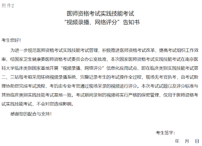 2.醫(yī)師資格考試實(shí)踐技能考試“視頻錄播、網(wǎng)絡(luò)評(píng)分”告知書