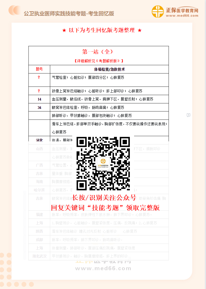 相信很多考生十分關注技能考試練習題,但根據(jù)國家要求,醫(yī)師資格技能考試練習題不允許外泄,為幫助大家更好地備戰(zhàn)技能考試,醫(yī)學教育網(wǎng)為大家整理準備了醫(yī)師資格實踐技能考試考前練習題,獲取方式如下: