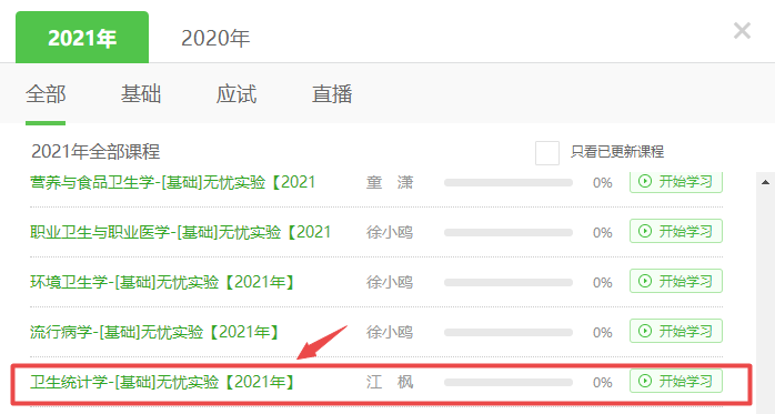 21年已付費(fèi)學(xué)員《衛(wèi)生統(tǒng)計(jì)學(xué)》看課位置