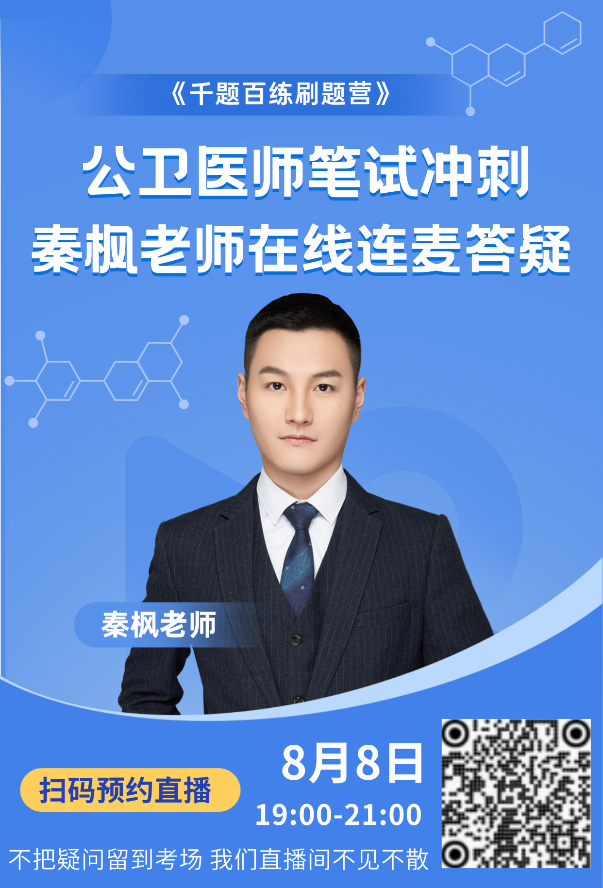 2024年公衛(wèi)醫(yī)師考試8月16日開(kāi)考!考前如何利用最后時(shí)間拔高搶分?快來(lái)預(yù)約參與秦楓老師針對(duì)公衛(wèi)醫(yī)師考生的考點(diǎn)串講直播!考前2小時(shí)速記,不把疑問(wèn)留到考場(chǎng)!