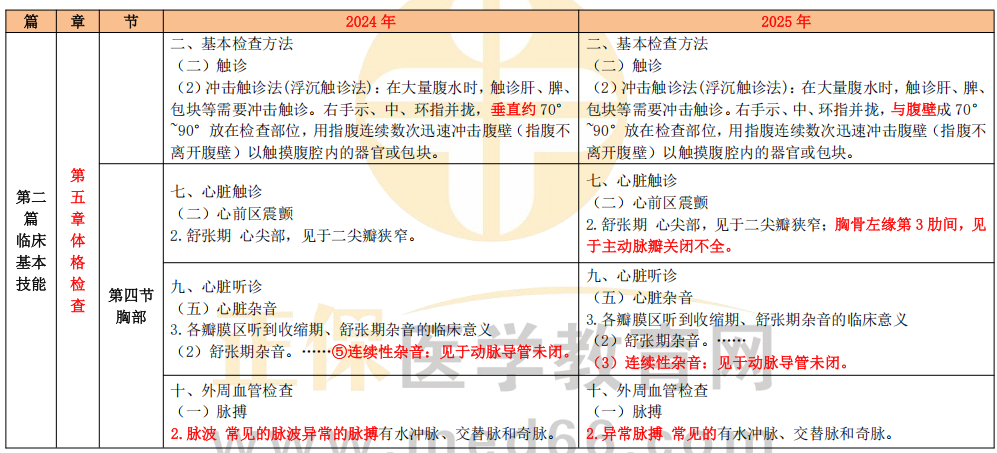 2025年公衛(wèi)執(zhí)業(yè)醫(yī)師《實踐技能》考試教材已公布,經(jīng)過醫(yī)學(xué)教育網(wǎng)專業(yè)老師核對,教材內(nèi)容知識點內(nèi)容有10%的細節(jié)變動。醫(yī)學(xué)教育網(wǎng)小編專門整理了2025年公衛(wèi)執(zhí)業(yè)醫(yī)師《實踐技能》教材變動匯總情況如下,各位考生趕快收藏起來!