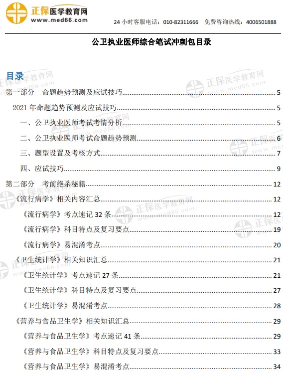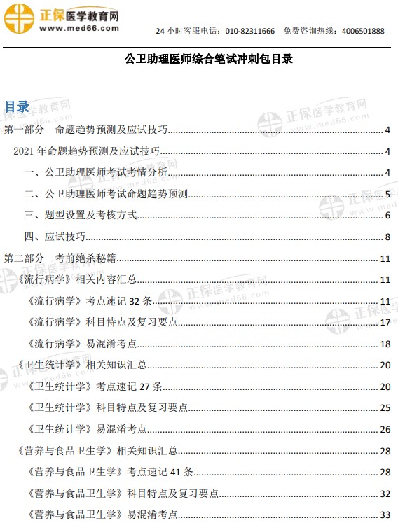 公衛(wèi)助理醫(yī)師綜合筆試沖刺包目錄: