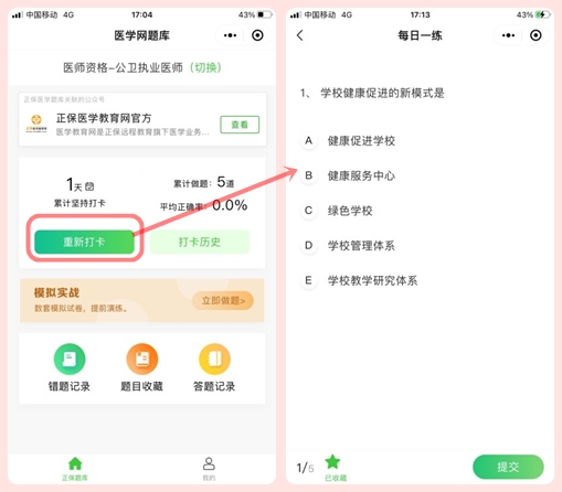 公衛(wèi)醫(yī)師微信刷題小程序正式上線!每日打卡+??紝?shí)戰(zhàn)600題