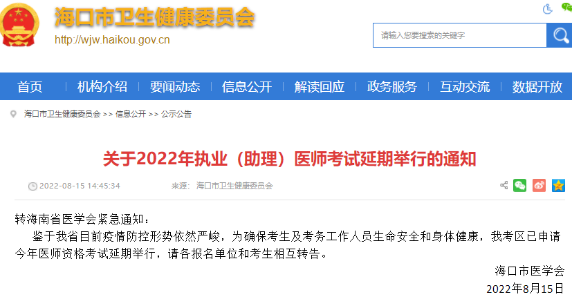 相關通知:海南考區(qū)2022年醫(yī)師資格考試醫(yī)學綜合考試延期舉行!