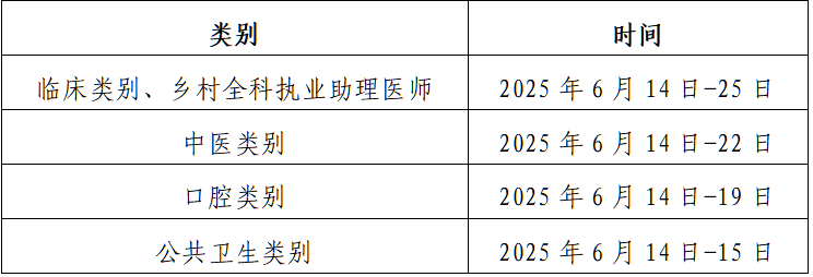 考試實(shí)行計(jì)算機(jī)化考試,軍隊(duì)現(xiàn)役人員加試軍事醫(yī)學(xué)、院前急救崗位和兒科專業(yè)加試相應(yīng)內(nèi)容。中醫(yī)類別蒙醫(yī)、藏醫(yī)、維醫(yī)、哈薩克醫(yī)專業(yè)實(shí)行紙筆考試。統(tǒng)一考試時(shí)間如下: