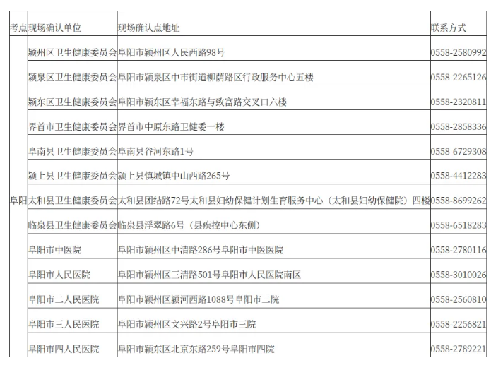 (五)阜陽考點各報名點及咨詢聯(lián)系電話: