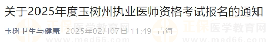 關(guān)于2025年度玉樹州執(zhí)業(yè)醫(yī)師資格考試報(bào)名的通知