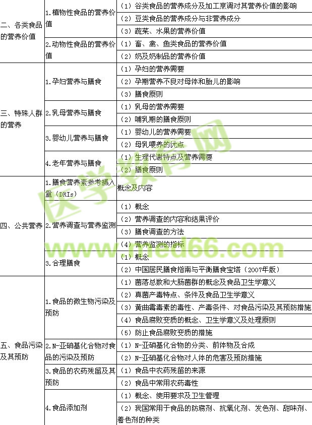 | 2015年公衛(wèi)執(zhí)業(yè)助理醫(yī)師《營養(yǎng)與食品衛(wèi)生學(xué)》考試大綱 | ||