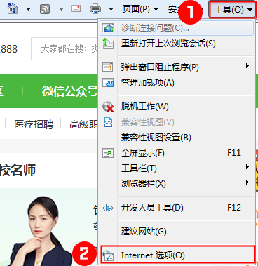 第一步:打IE瀏覽器-工具-Internet
