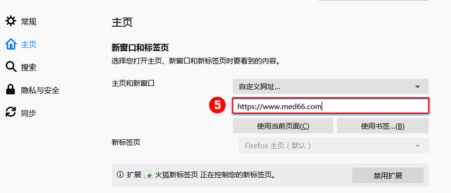 第二步:進入"主頁"選項,點擊“Firefox主頁(默認)”后,選擇“自定義網(wǎng)址”。