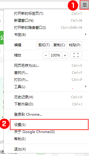 第一步:打開谷歌瀏覽器-點右上角列表按鈕-設(shè)置,如圖所示: