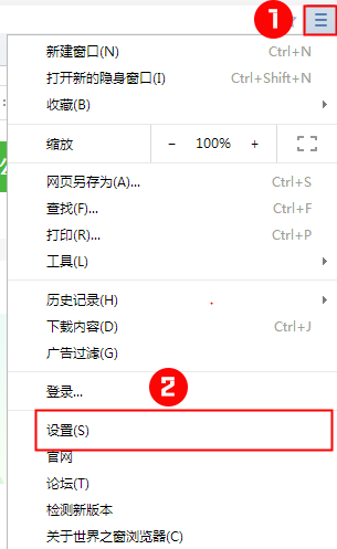 第一步:打開世界之窗瀏覽器,然后點擊右上角列表按鈕-設(shè)置,如圖所示: