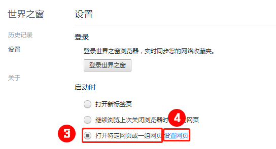 第二步:點擊“打開特定網(wǎng)頁或一組網(wǎng)頁”后,點擊“設(shè)置網(wǎng)頁”。
