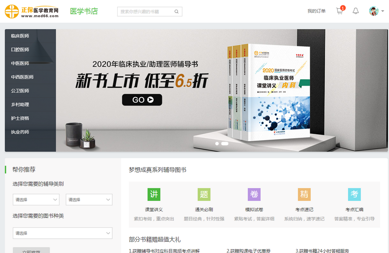 第一步:進(jìn)入正保醫(yī)學(xué)教育網(wǎng)醫(yī)學(xué)書店,選擇輔導(dǎo)類別。