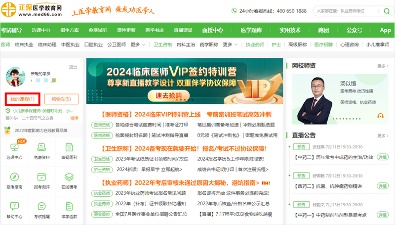 第一步:使用電腦打開正保醫(yī)學(xué)教育網(wǎng)官網(wǎng)(m.tymfj.cn),登錄賬號后點(diǎn)擊“我的課程”。
