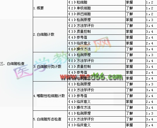 | 5.人類(lèi)白細(xì)胞抗原檢查 | (1)HLA抗原和抗體 | 了解 | 1,3 | |