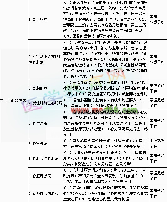 | 2.風濕熱 | (1)風濕熱診斷要點;處理要點及轉診指征;預防及健康指導(2)風濕熱鑒別診斷(3)風濕熱病因、發(fā)病機制 | 掌握熟悉了解 | |