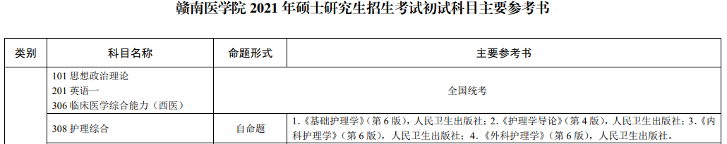 贛南醫(yī)學院2021年護理碩士研究生招生考試初試科目