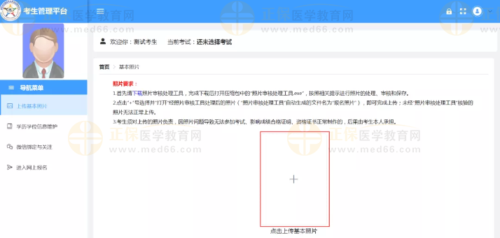 5、照片上傳成功后,頁面左上角會顯示考生照片。