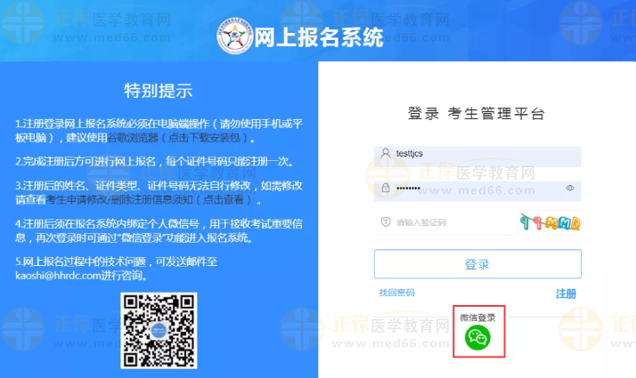 (五)注冊成功后系統(tǒng)會返回登錄頁面,輸入注冊的用戶名、密碼以及頁面顯示的驗證碼登錄網(wǎng)上報名系統(tǒng)。
