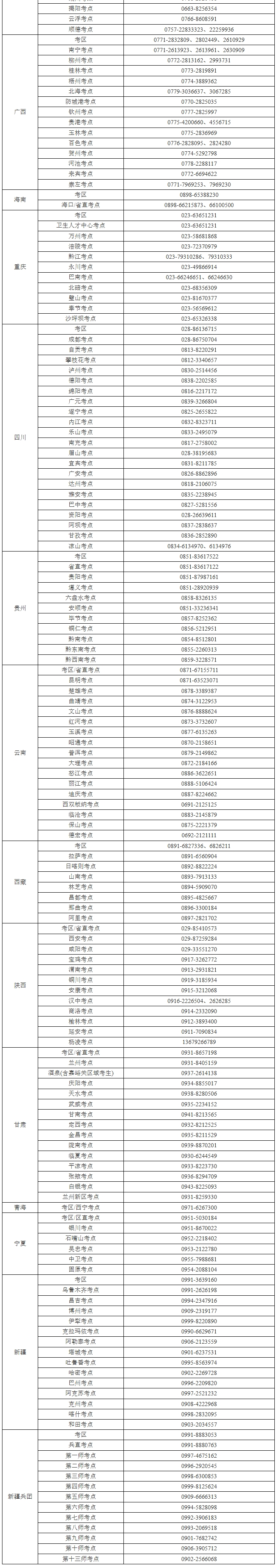 衛(wèi)健委:護士執(zhí)業(yè)資格考試各考區(qū)、考點咨詢電話