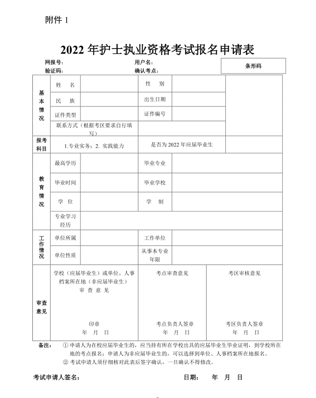 1.經(jīng)所在單位或檔案存放單位審核并加蓋公章的《2022年護(hù)士執(zhí)業(yè)資格考試報(bào)名申請(qǐng)表》;