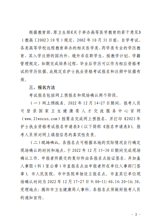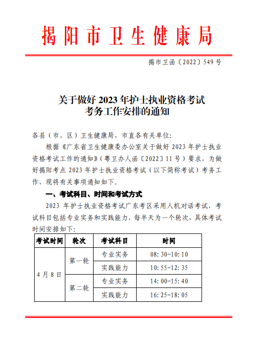 揭陽市關(guān)于做好2023年護士執(zhí)業(yè)資格考試考務(wù)工作安排的通知