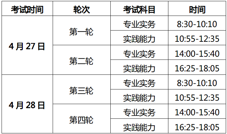 考試時間:2024年4月27日-28日,每半天為一輪次,考生將隨機分配至其中一個輪次。