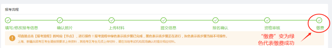 2024年度上??紖^(qū)衛(wèi)生專業(yè)技術(shù)資格考試、護(hù)士執(zhí)業(yè)資格考試、衛(wèi)生人才評(píng)價(jià)考試?yán)U費(fèi)截止時(shí)間為2月8日,請(qǐng)尚未繳費(fèi)的考生抓緊時(shí)間登錄中國(guó)衛(wèi)生人才網(wǎng)(https://www.21wecan.com/)或微信小程序進(jìn)行繳費(fèi),繳費(fèi)標(biāo)識(shí)變?yōu)榫G色代表繳費(fèi)成功,逾期未繳費(fèi)的考生視為放棄考試。