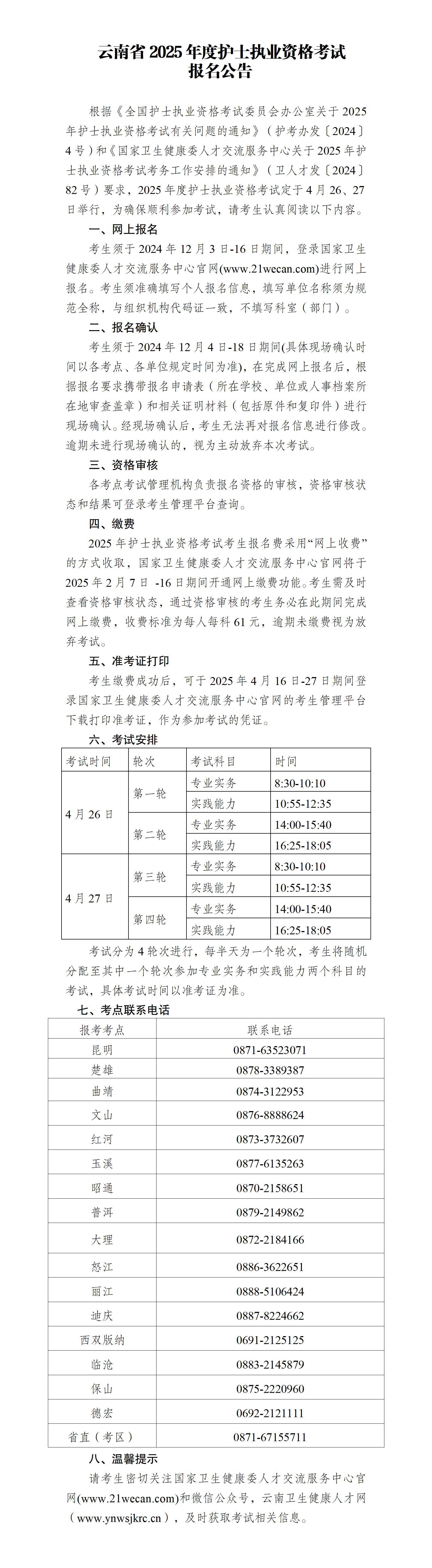 云南省2025年度護(hù)士執(zhí)業(yè)資格考試報(bào)名公告