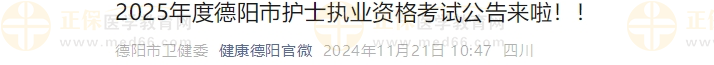 2025年度德陽(yáng)市護(hù)士執(zhí)業(yè)資格考試公告