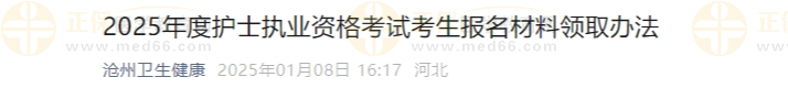 滄州2025年度護(hù)士執(zhí)業(yè)資格考試考生報(bào)名材料領(lǐng)取辦法