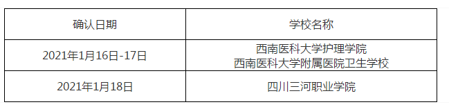 (二)2021年護(hù)理、助產(chǎn)專(zhuān)業(yè)應(yīng)屆畢業(yè)生由考生所在學(xué)校統(tǒng)一安排人員攜帶筆記本電腦和掃碼槍到瀘州市衛(wèi)生健康信息中心(瀘州市衛(wèi)生考試中心)統(tǒng)一確認(rèn),務(wù)必確保在規(guī)定時(shí)間內(nèi)完成相關(guān)考生報(bào)名確認(rèn)工作,具體時(shí)間安排如下: